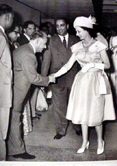 Greeting Her Royal Highness, Queen Elizabeth of England during her visit to the Atomic Power Plant in Trombay, India.